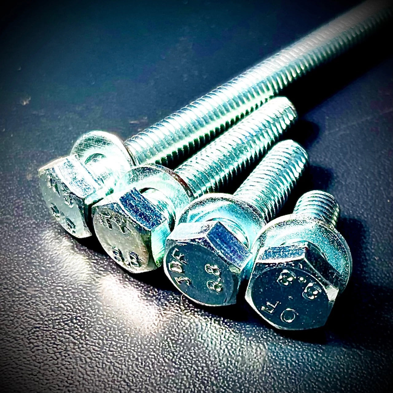 Fixaball verkauft M24-Stellschrauben (mit vollem Gewinde) aus Zink mit Sechskantkopf in allen Längen plus Unterlegscheibe.