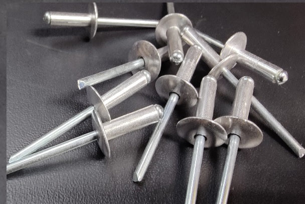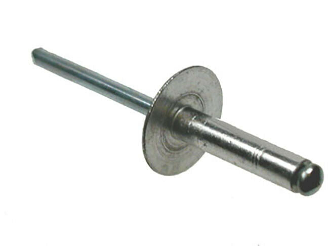 - Rivets aveugles à grande bride normalement utilisés avec une rondelle, pour assembler des matériaux plus tendres. La grande bride et la rondelle répartissent mieux la charge sans endommager les matériaux assemblés.