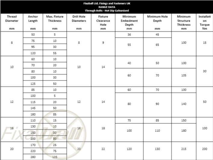 Fixaball sells all lengths of M20 through bolts, hot dip galvanised.