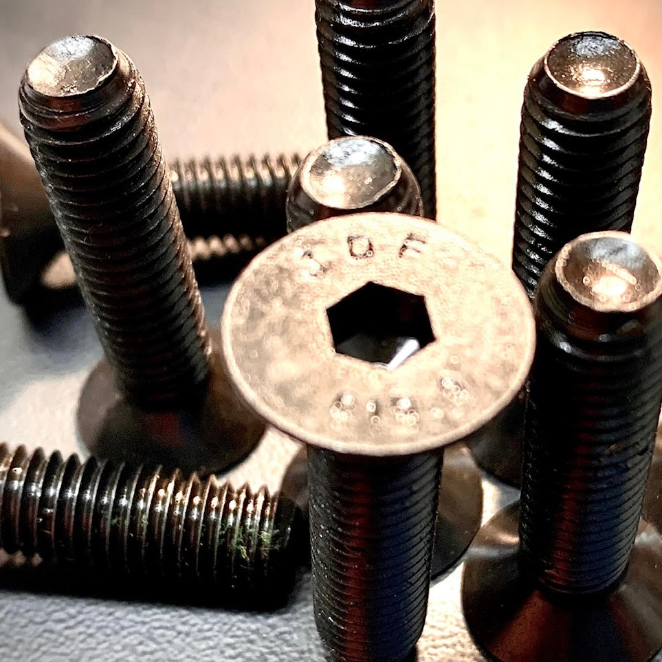 Countersunk fasteners are designed to fit flush on the connecting surface when fully tightened. They are tightened and loosened with an allen/ hex key drive.