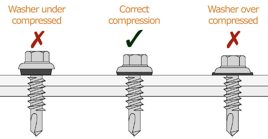 16mm and 19mm Washer and EPDM (rubber) seal: 16mm/ 19mm rubber washer beneath the aluminium flange expands under pressure and forms a permanent weather-seal.