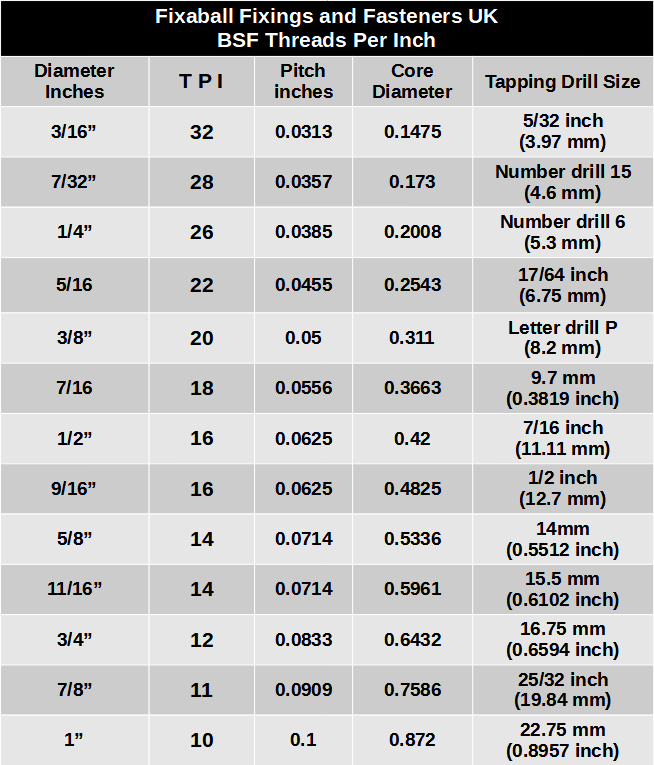 Today, fasteners with a BSF thread are particularly hard to find as they are no longer mass produced.