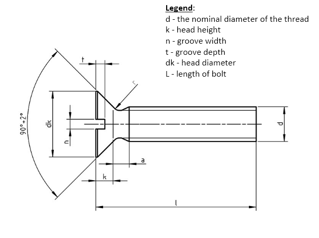 A countersunk screw is used to fasten components, leaving a flush surface finish. Their length is measured from the end of the screw to the other, furthest end, at the top of the head.